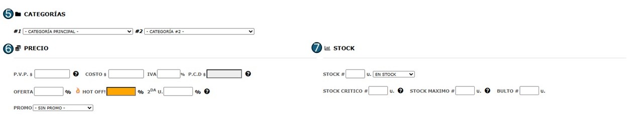 5. CATEGORÍAS: Aquí podremos asignar dos categorías para un producto llegado el caso.
