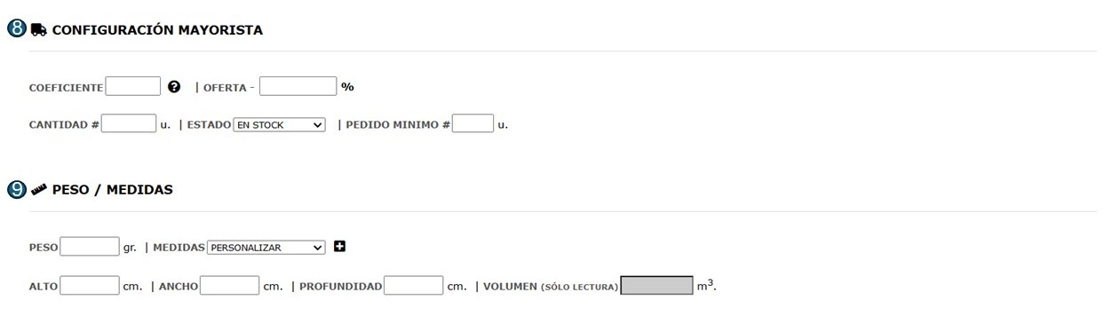 - Precisión logística mediante edición de peso, medidas y volumen del producto.