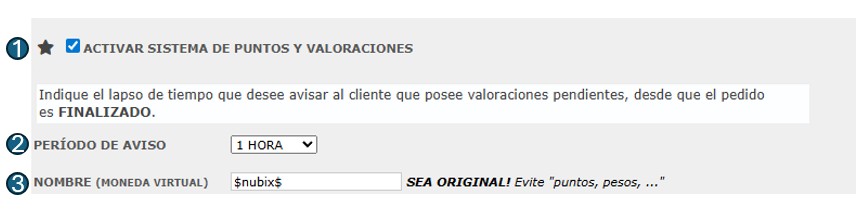 1. Al activar las valoraciones, nos habilita el resto de las opciones configurables y el sitio ya queda listo para operar con puntos (moneda virtual)