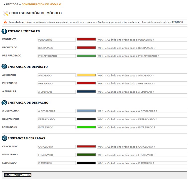 - Algunos estados del pedido impactan directamente en la información que ve el CLIENTE en la consulta online de su orden, por lo que deben reflejar fielmente la situación real del pedido.