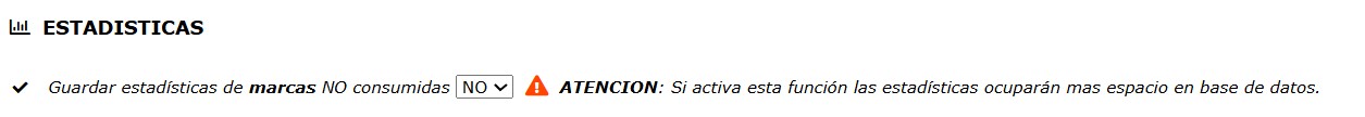 Desde esta opción se puede definir si el sistema debe guardar estadísticas de marcas NO consumidas durante el proceso de compra.