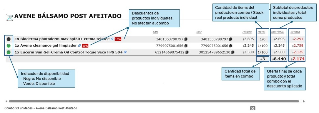 - Revisar stock disponible de cada ítem para evitar combos incompletos o sin disponibilidad.