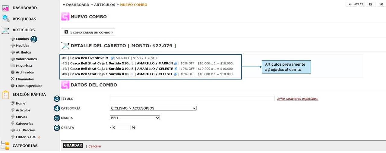 Ruta: Artículos > Combos
